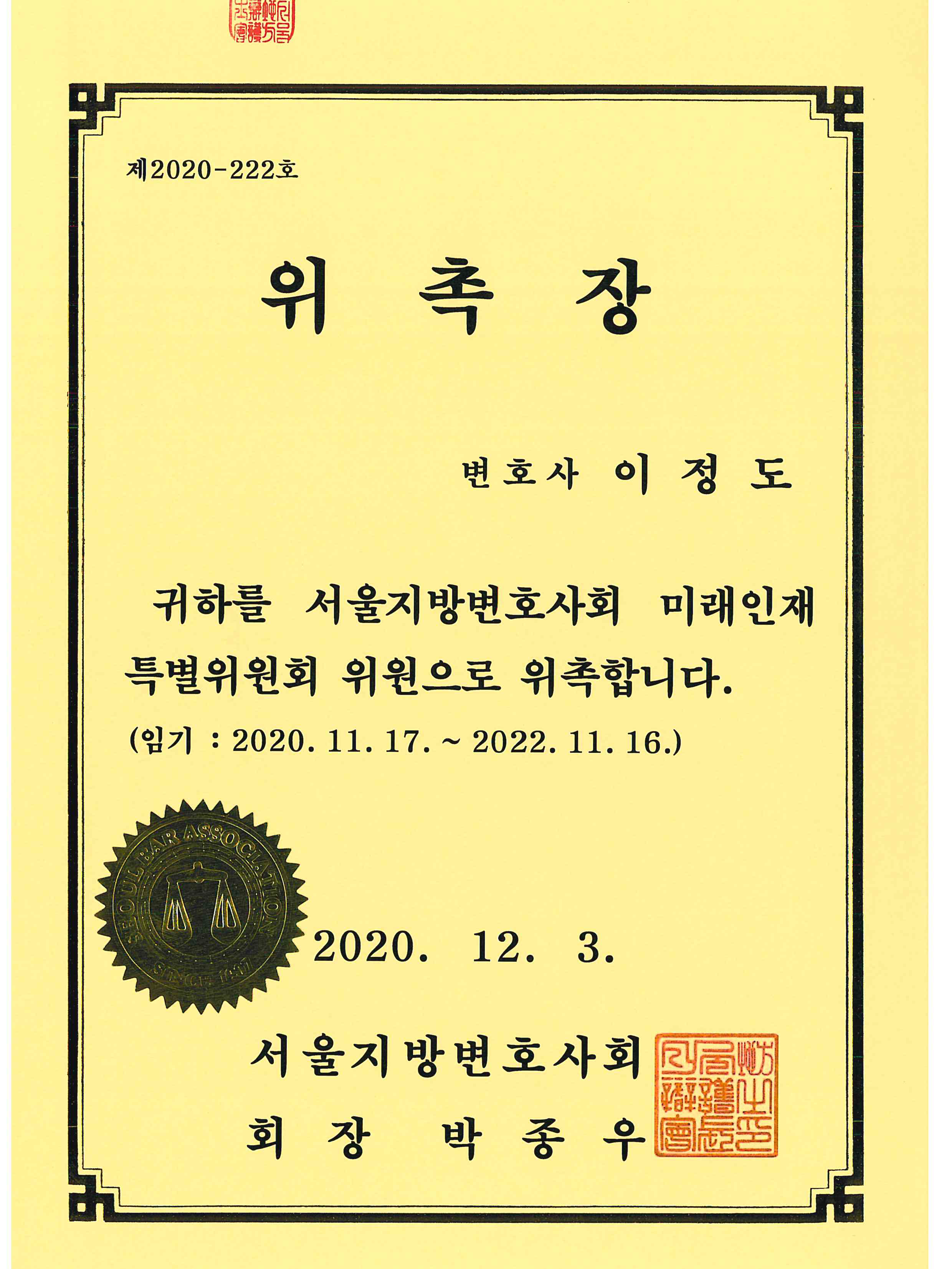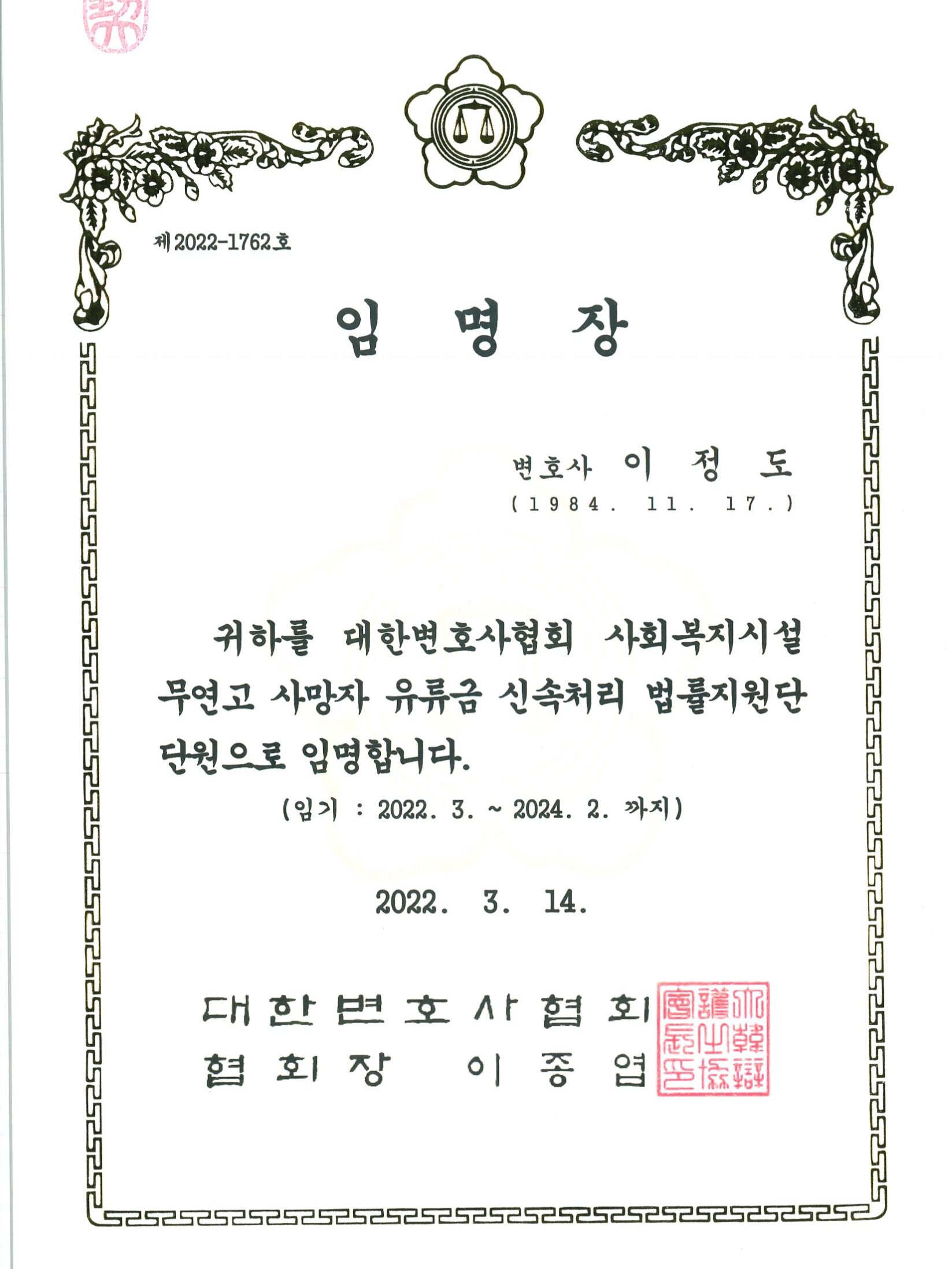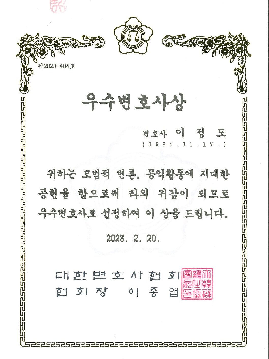 제 22회 대한변호사협회 우수변호사상