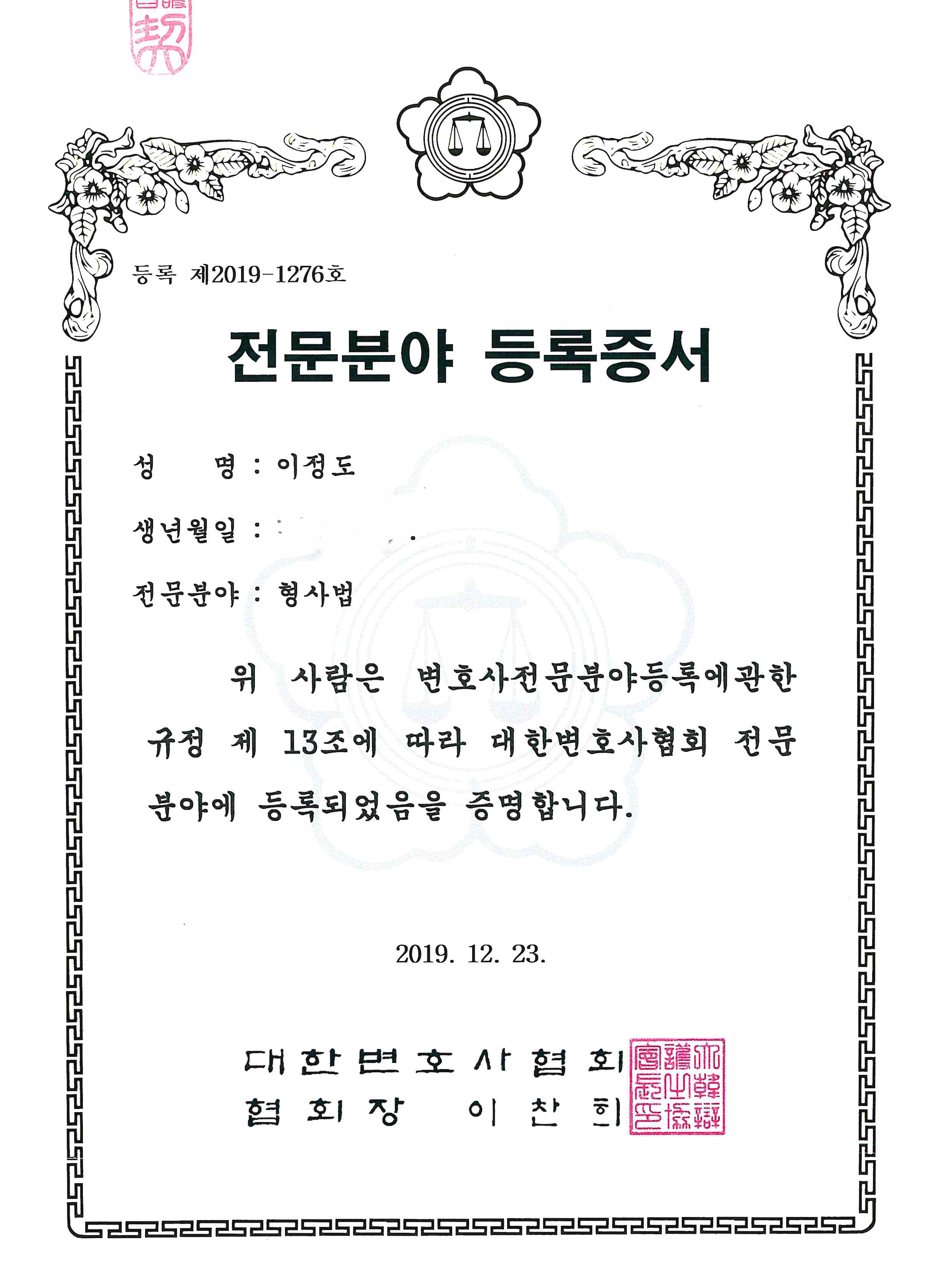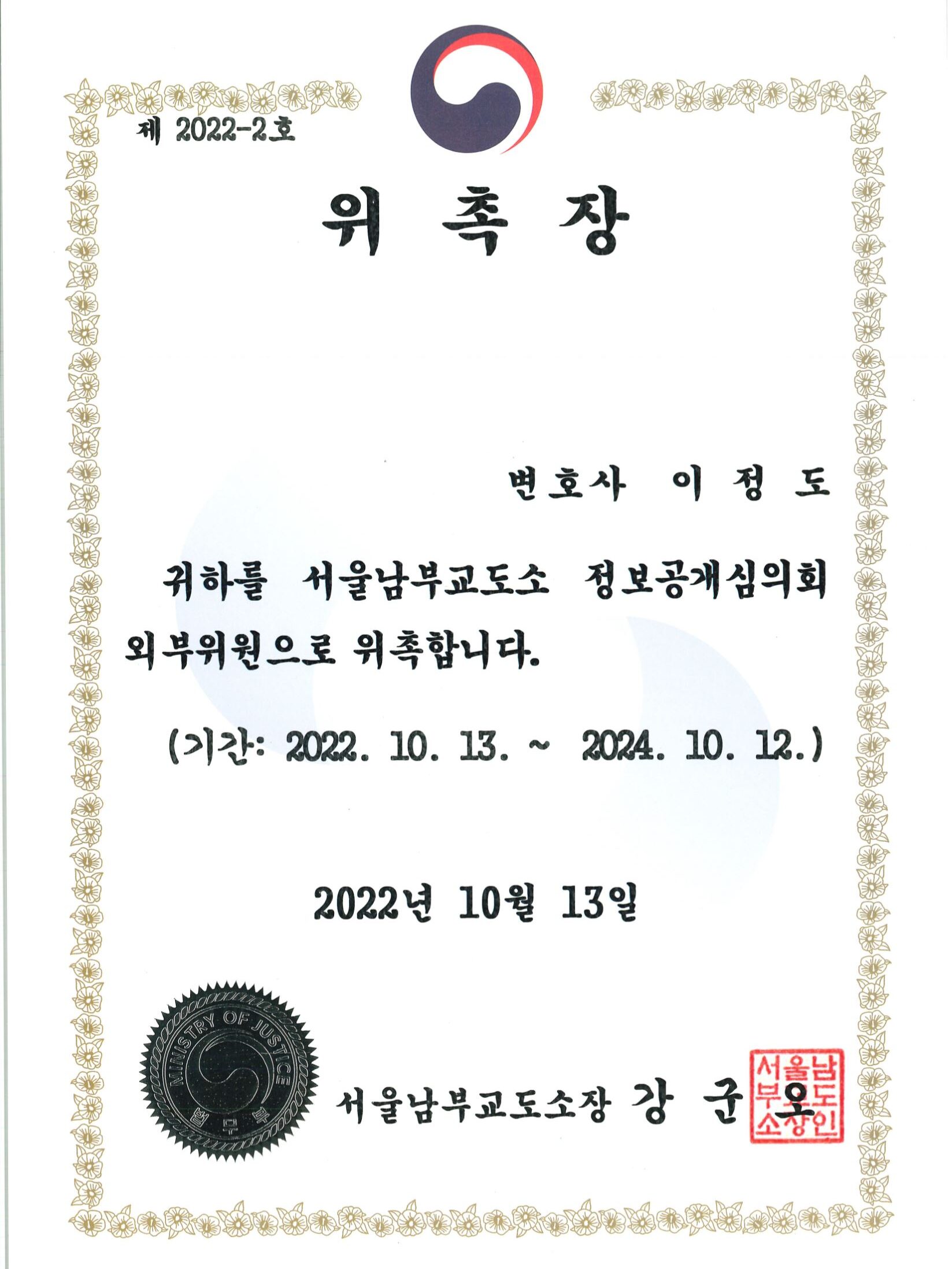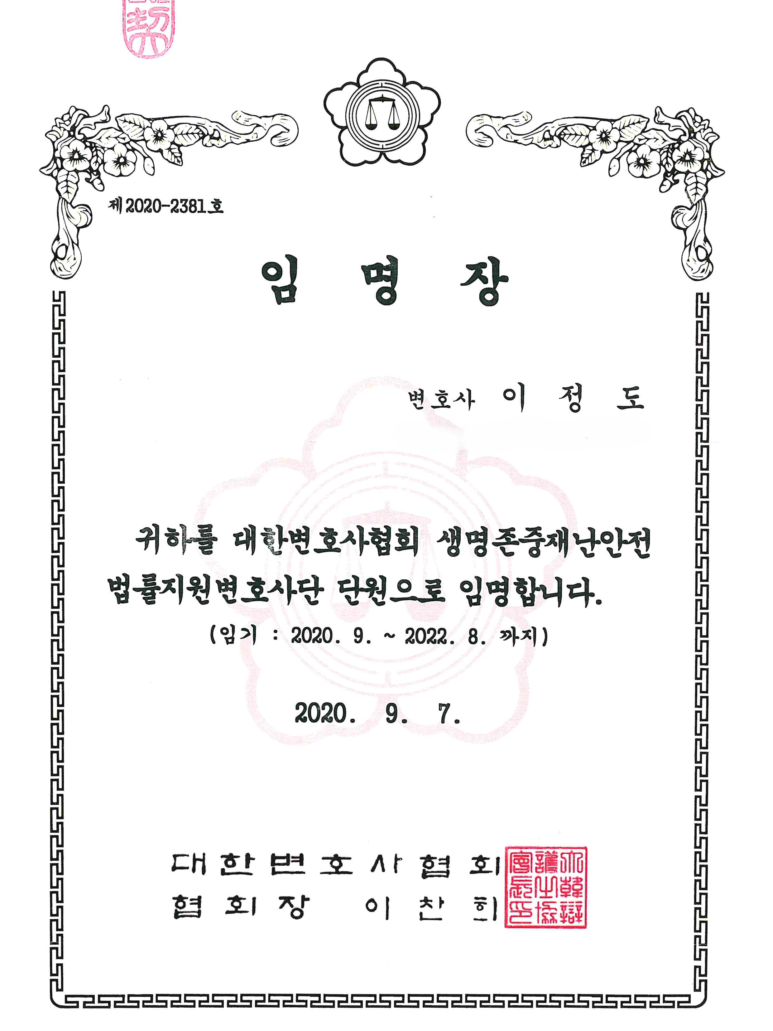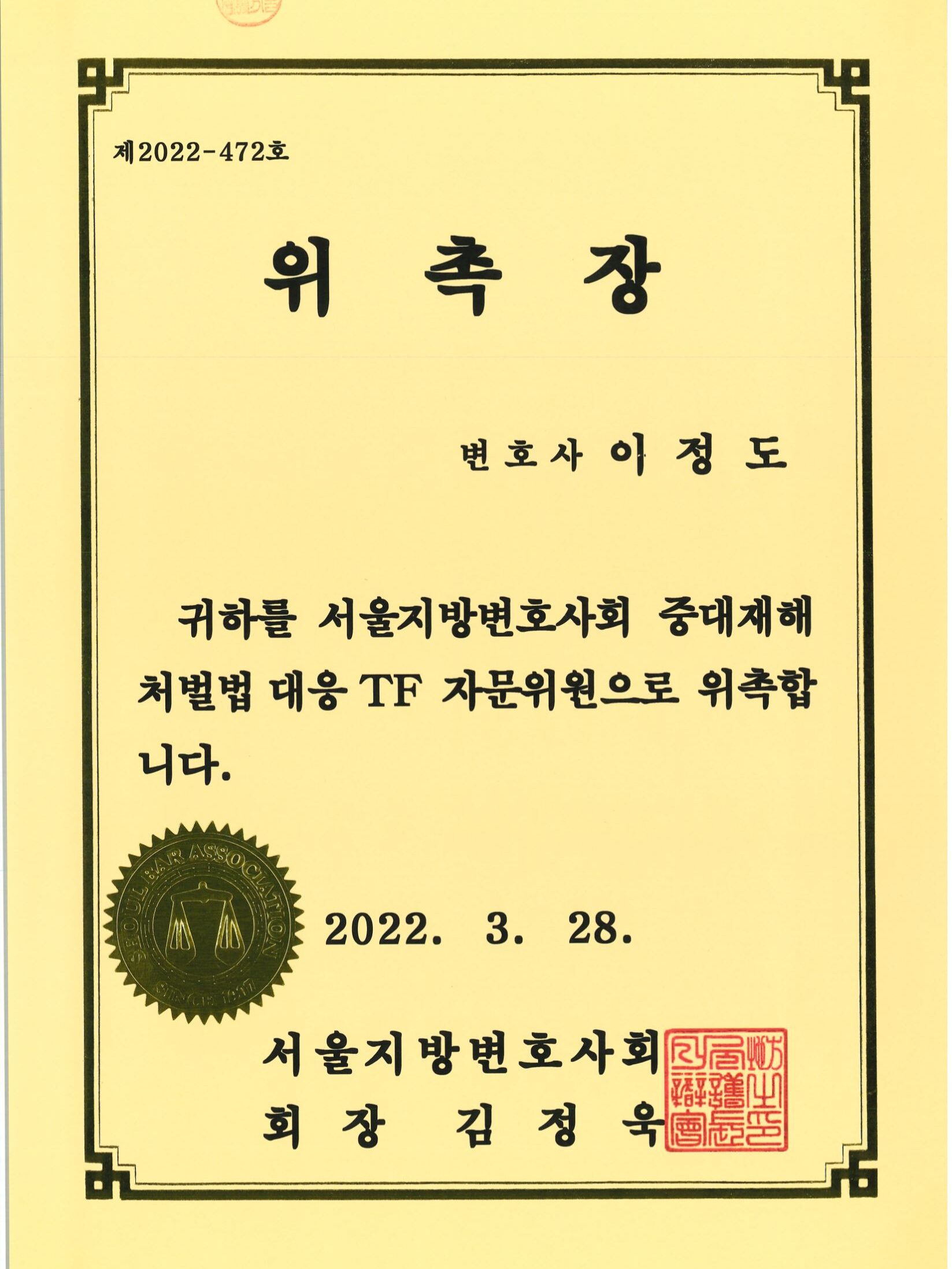 제 22회 대한변호사협회 우수변호사상